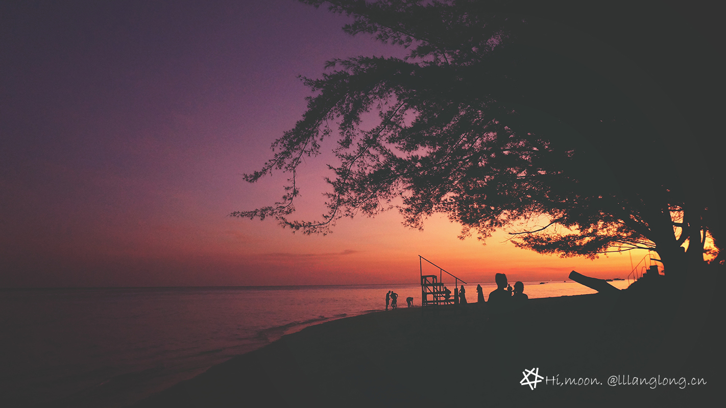 海边落日,晚归的居民,嬉戏的孩童,缠绵的情侣